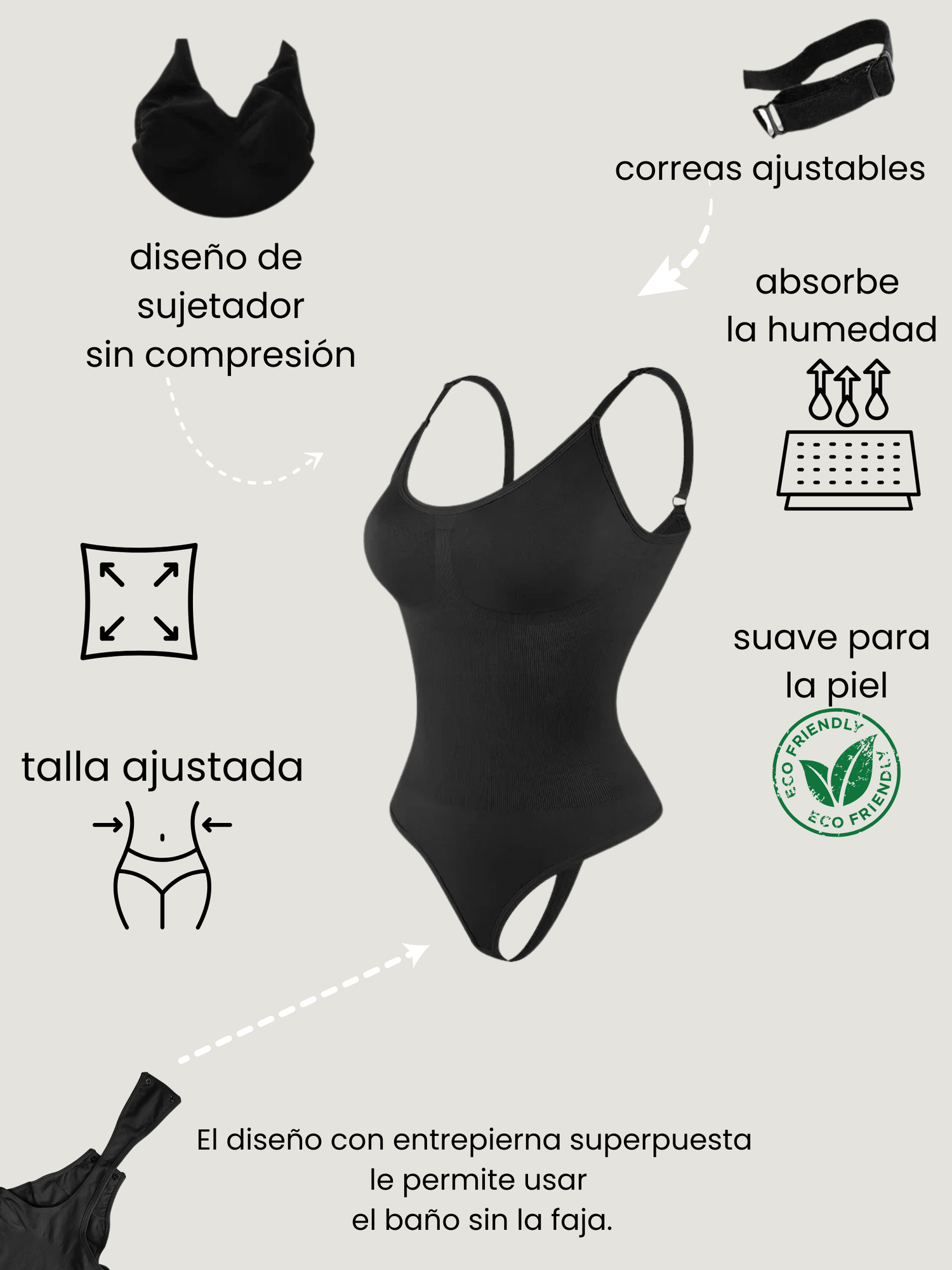 👗 Tirantes ajustables: se adaptan perfectamente a tu cuerpo para ofrecerte comodidad durante todo el día. Tejido de primera calidad: nailon + elastano, moldeador, transpirable y ultrasuave, ideal incluso para pieles sensibles.