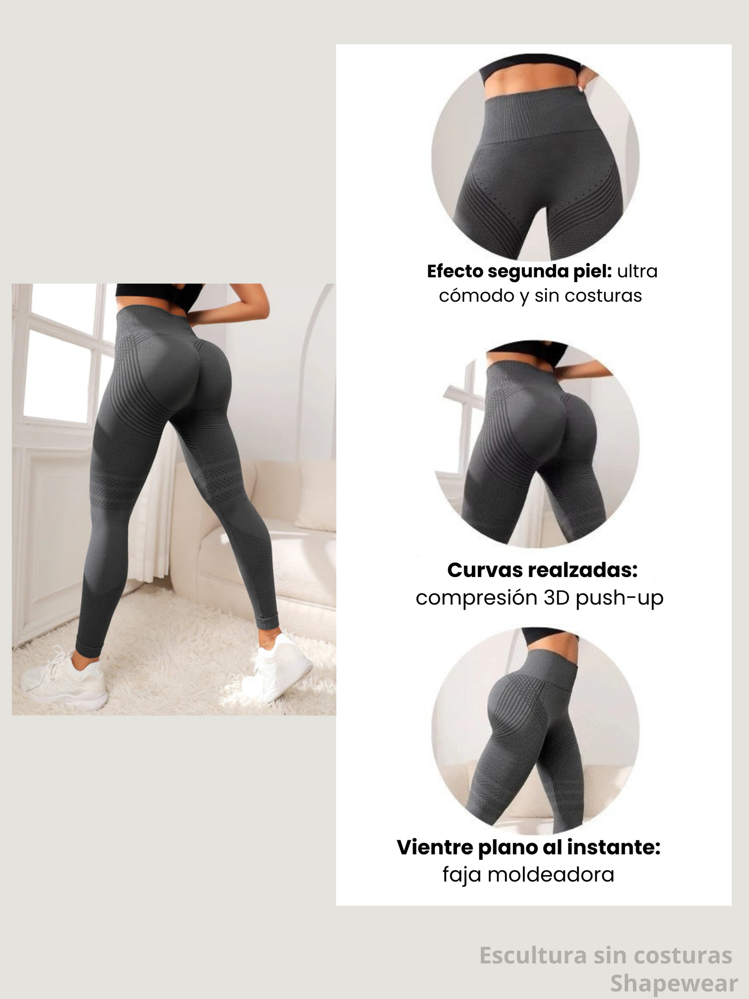 ✔️ Realza los glúteos de forma natural, sin relleno ni artificios.