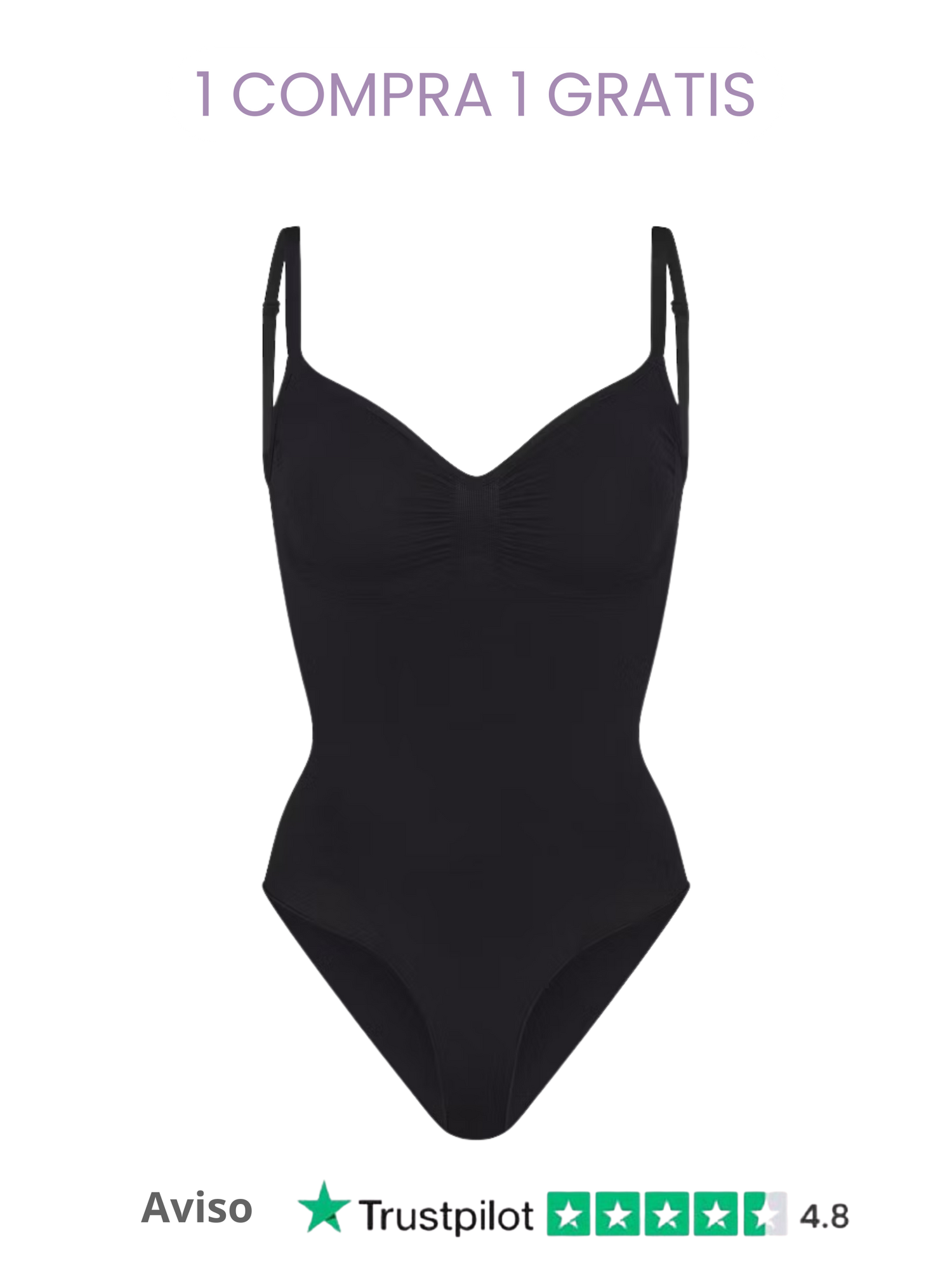 Compresión inteligente: cintura esculpida, vientre alisado, curvas realzadas, sin comprimir. Tirantes ajustables, soporte integrado, cierre en la entrepierna: tan sencillo como una prenda interior, comodidad y confianza inmediatas.